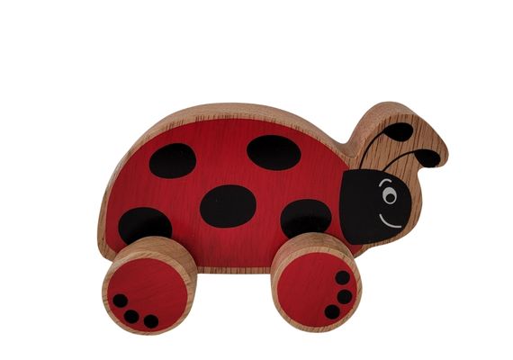 A lovely wooden ladybird push along fair trade toy. Produced by Lanka Kade and handcrafted in Sri Lanka using non toxic paints and sustainably sourced rubber wood.